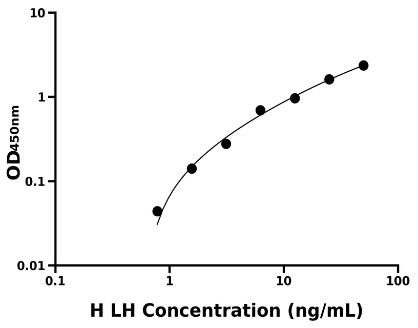 本试剂盒采用双抗体夹心法ELISA技术:将捕获抗体包被于酶标板上,捕获样品及标准品中的待测物LH,清洗后,再加入生物素标记的检测抗体进行孵育后清洗,形成“捕获抗体-抗原-检测抗体”免疫复合物,随后加入链霉亲和素偶联的辣根过氧化物酶进行孵育,待孵育结束后清洗,接着加入TMB显色后,若样本中有待测物则显蓝色,加入终止液停止反应。检测过程中游离的成分均被洗去,用酶标仪在450 nm处测OD值,颜色的深浅和样品中的待测物的含量呈正比,通过绘制标准曲线计算出样本中LH的浓度。