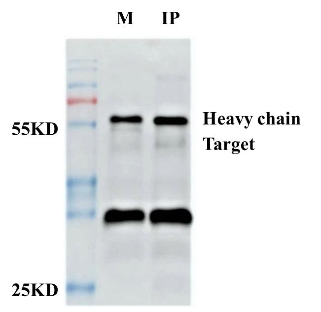 从左往右,泳道依次为Marker,未结合蛋白的磁珠,下拉融合HA标签的靶标蛋白。