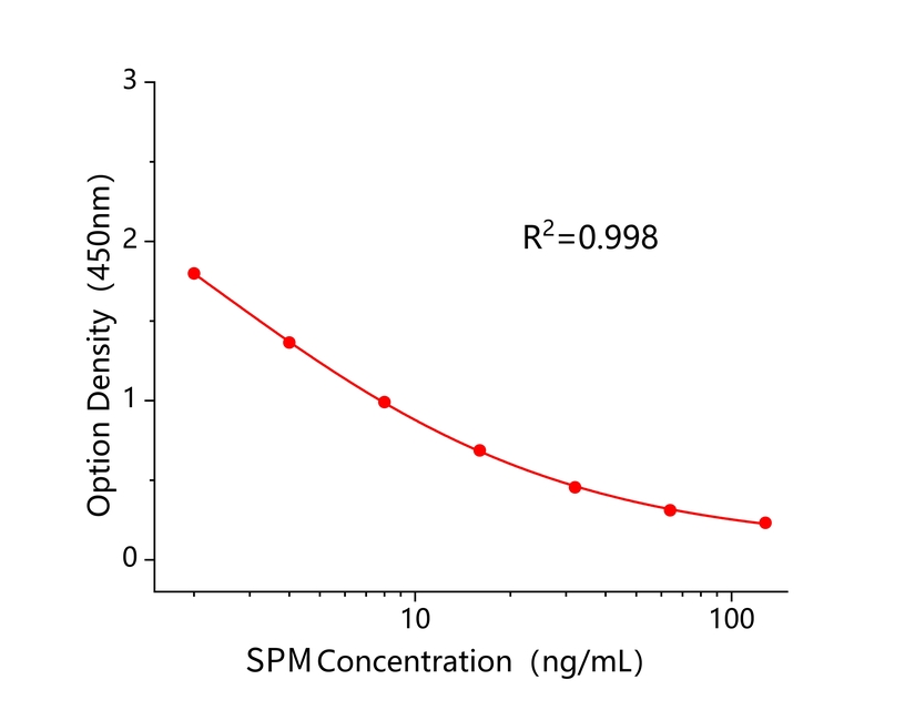 本试剂盒采用间接竞争ELISA方法,在酶标板微孔条上预包被偶联抗原,样本中螺旋霉素和微孔条上预包被的偶联抗原竞争螺旋霉素抗体,加入酶标二抗后,形成包被抗原-抗体-酶标二抗复合物。随后结合的酶催化TMB底物显色,样本吸光值与其含有的螺旋霉素成负相关。通过标准曲线可准确定量样品中螺旋霉素的含量。通过标准曲线计算所得值乘以样品处理的稀释倍数即为实际样品中螺旋霉素的含量。