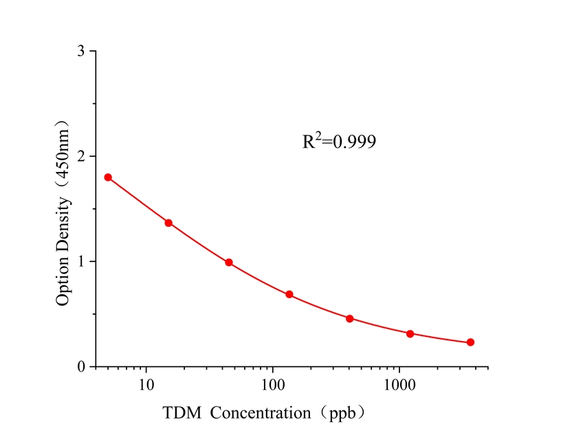 本试剂盒采用间接竞争ELISA方法,在酶标板微孔条上预包被偶联抗原,样本中三唑酮和微孔条上预包被的偶联抗原竞争三唑酮抗体,加入酶标二抗后,形成包被抗原-抗体-酶标二抗复合物。随后结合的酶催化TMB底物显色,样本吸光值与其含有的三唑酮成负相关。通过标准曲线可准确定量样品中三唑酮的含量。通过标准曲线计算所得值乘以样品处理的稀释倍数即为实际样品中三唑酮的含量。